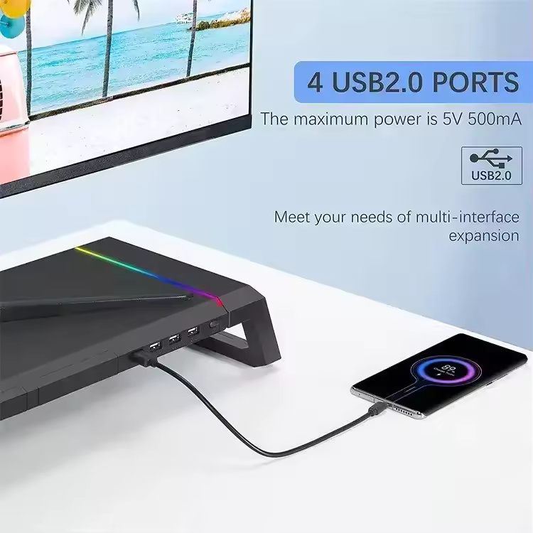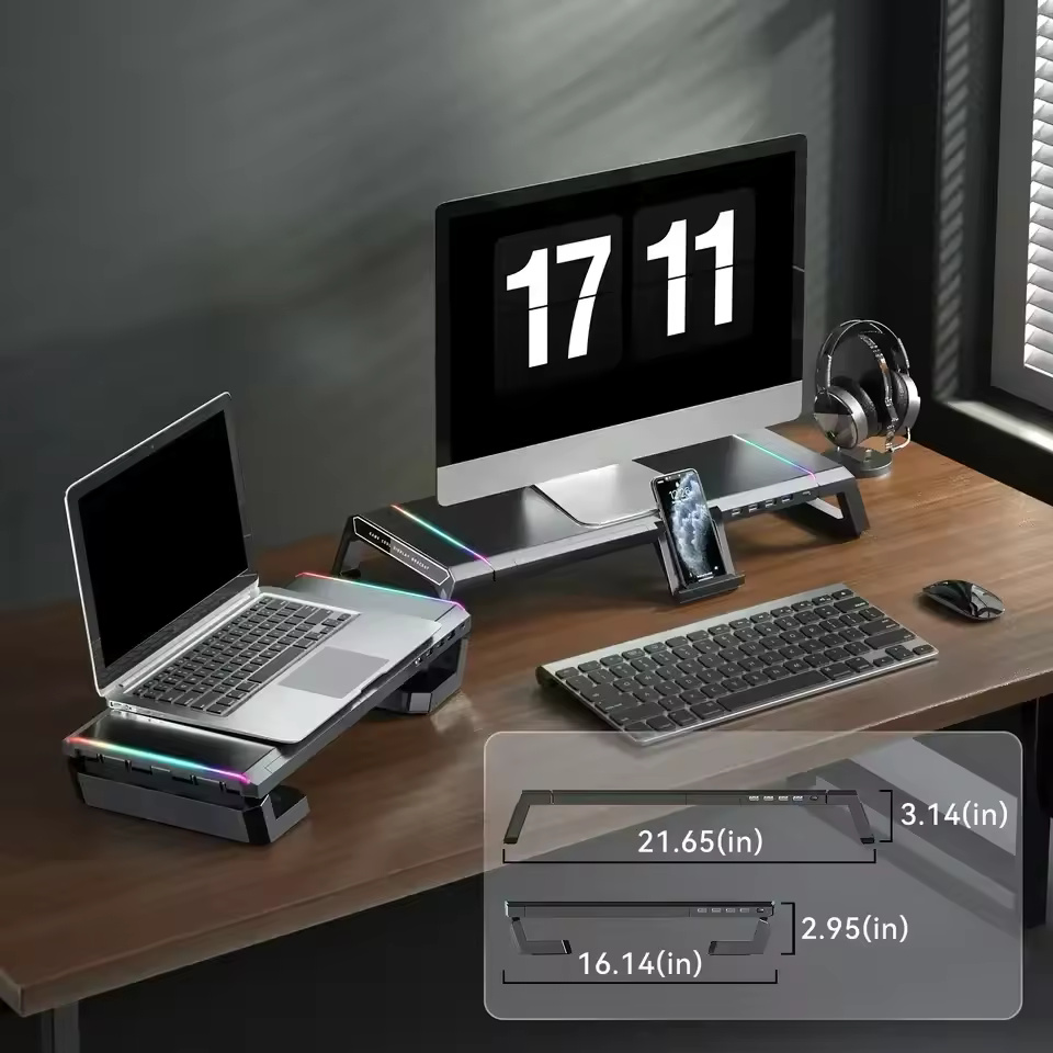 Aluminum PC Monitor Stand – 4 USB Ports with USB 3.0 Fast Charging & Keyboard Storage | Space-Saving Laptop Stand